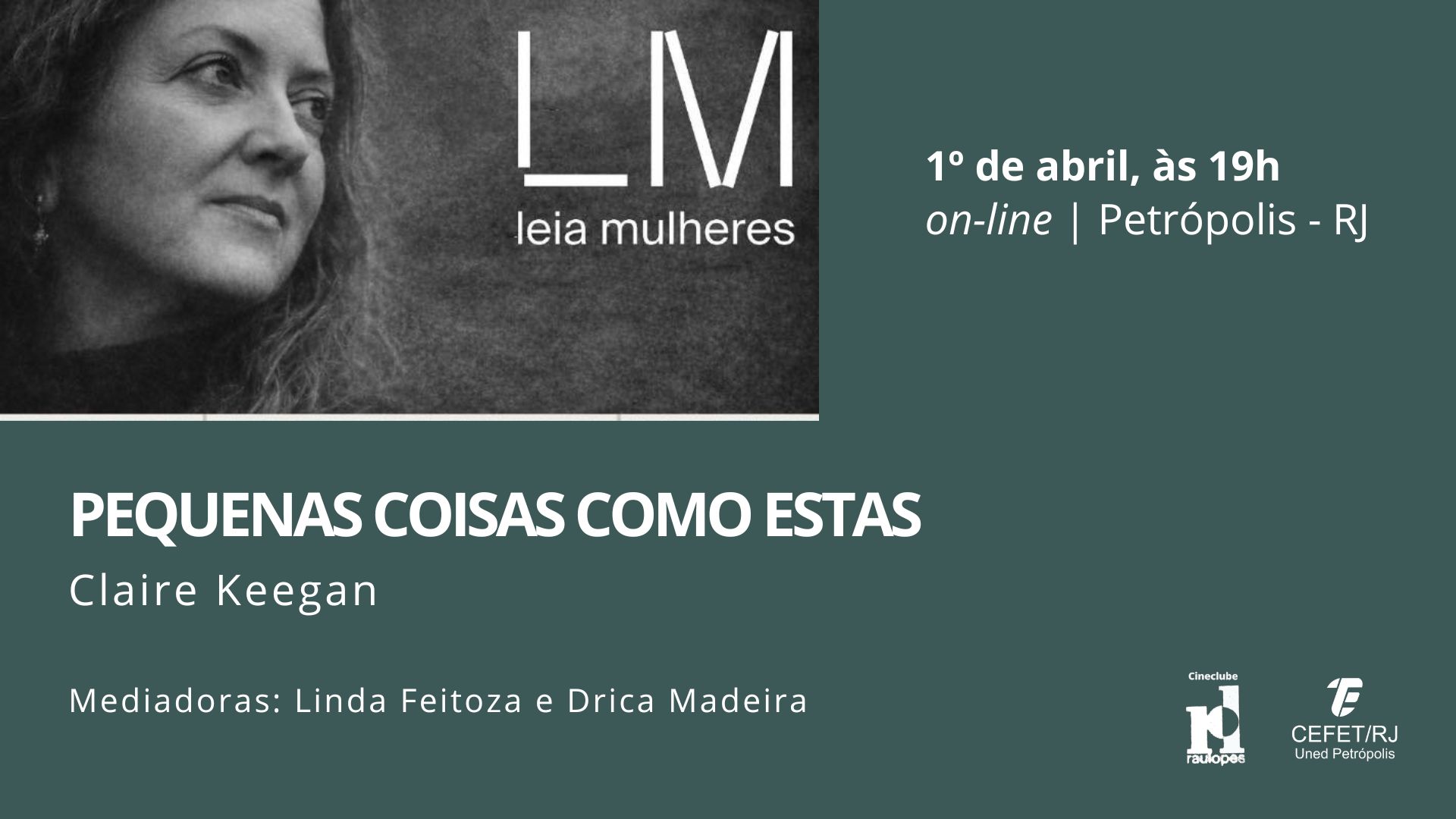 O evento on-line, com mediação de Linda Feitoza e Drica Madeira, acontecerá no dia 1º de abril a partir das 19h pelo Google Meet. Os interessados em participar devem solicitar o link do evento por meio das redes sociais – Leia Mulheres Petrópolis no Instagram e  grupo Leia Mulheres Petrópolis-RJ no Facebook