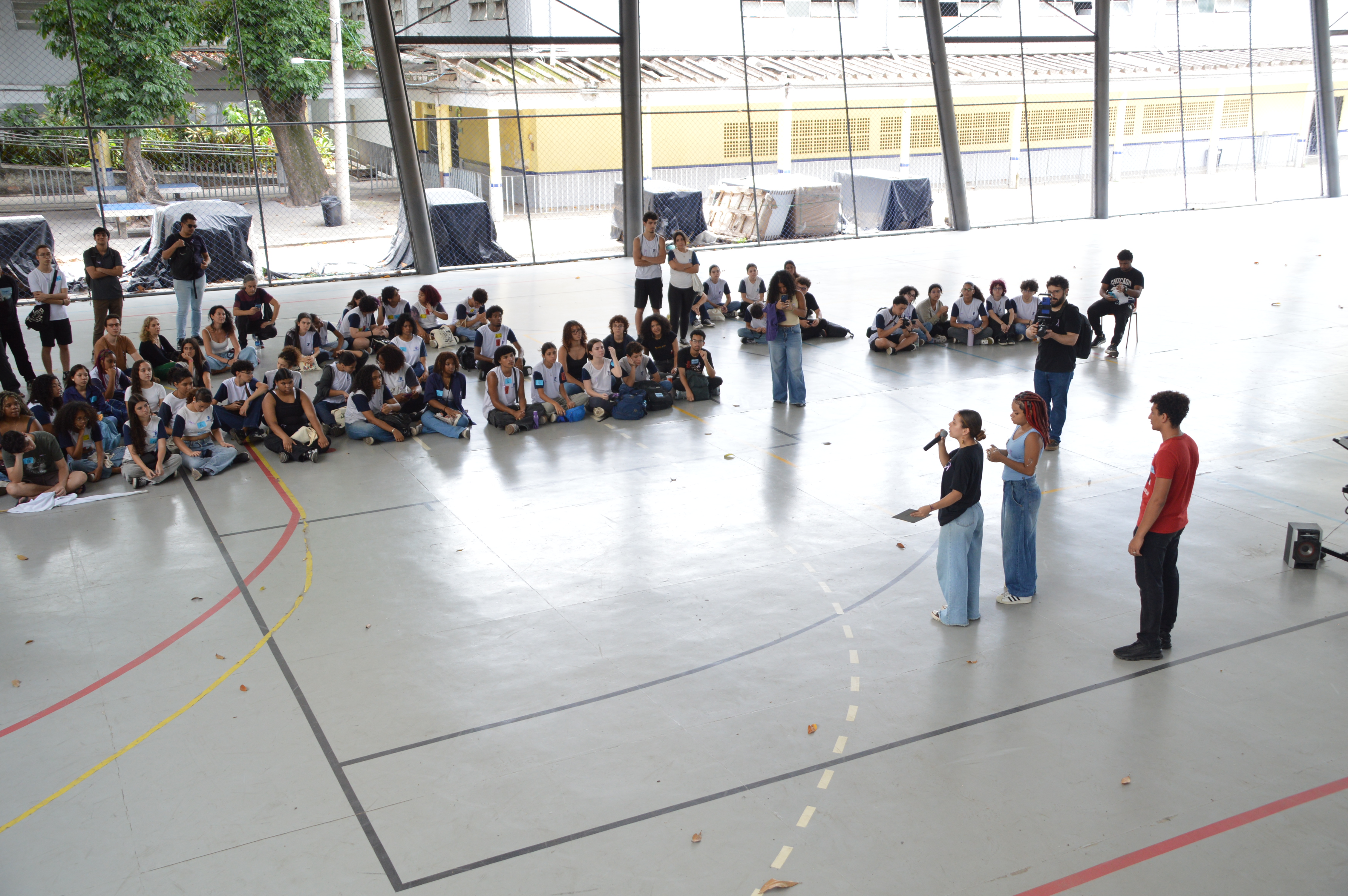 Estudantes durante a cerimônia de inauguração da placa na Quadra da Unidade Maracanã
