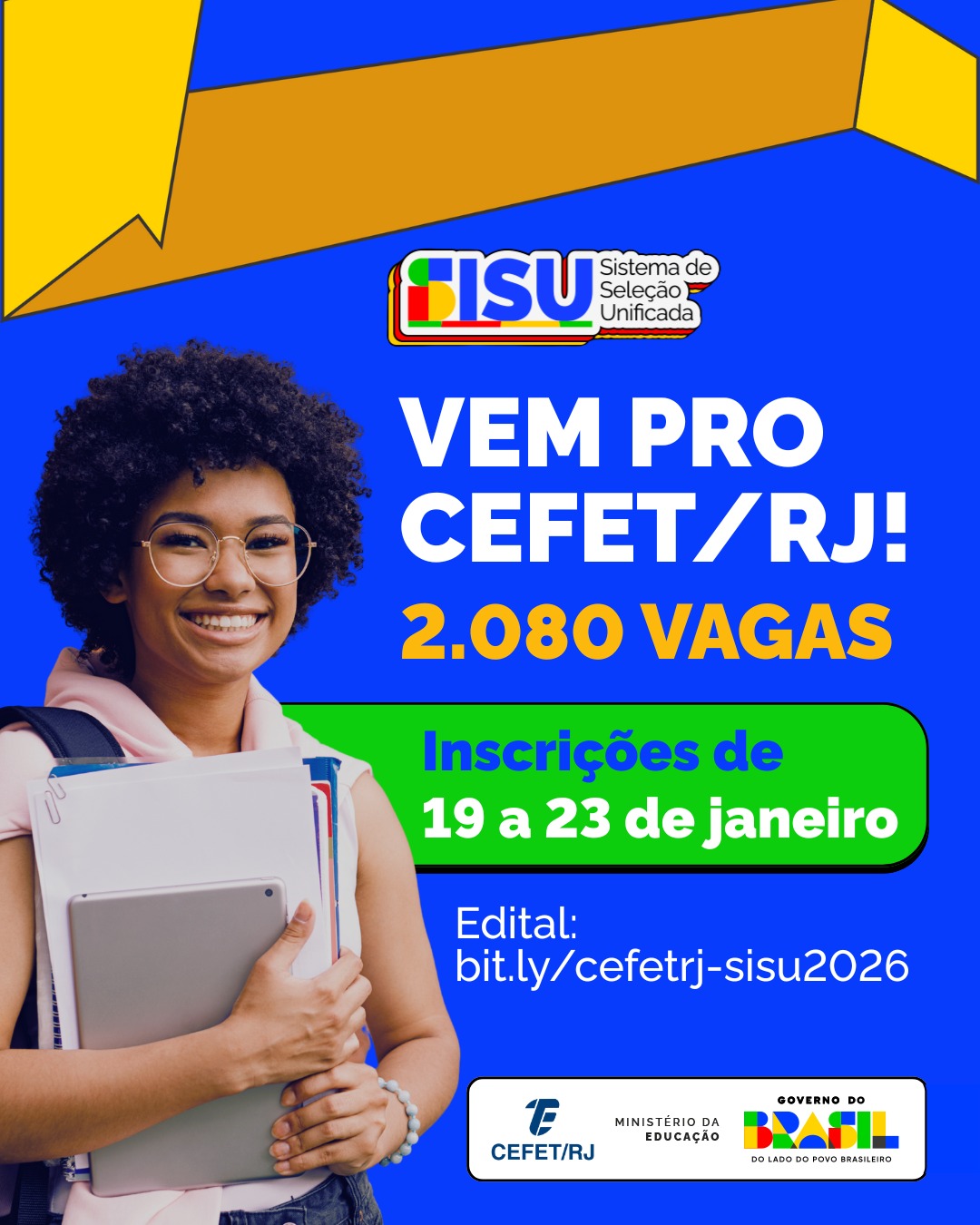 Na quarta-feira (14), o Cefet/RJ divulgou o edital do processo seletivo para ingresso nos cursos de graduação da instituição. Neste certame, são ofertadas 2.080 vagas a serem preenchidas no 1º e no 2º semestres de 2026. As inscrições poderão ser realizadas entre os dias 19 e 23 de janeiro, exclusivamente pelo site do Sistema de Seleção Unificada (Sisu), no endereço acessounico.mec.gov.br/sisu. Estão aptos a concorrer os candidatos que realizaram o Exame Nacional do Ensino Médio (Enem) em 2025 e obtiveram a pontuação mínima exigida para cada curso. Não há cobrança de taxa.